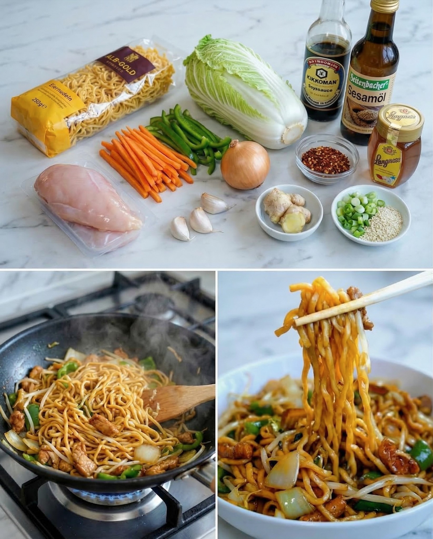 If you’re looking for a quick, satisfying meal that brings everyone to the table, this stir-fried noodle dish is a true winner. Tender chicken, crisp vegetables, silky eggs, and savory sauce come together in a hot wok for a dish that’s bursting with flavor and texture. Perfect for busy weeknights—and even better the next day!