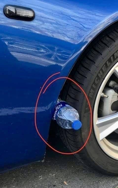 According to reports shared on social media and news stories from different countries, some thieves have allegedly used a simple trick involving an empty plastic bottle placed between the tire and the wheel well, often near the front passenger-side tire.