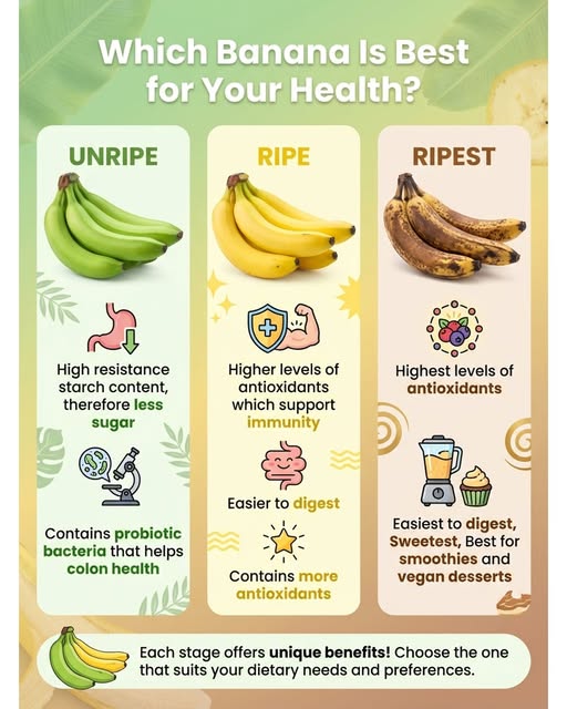 Bananas are one of the most popular and nutritious fruits in the world. But did you know that the health benefits of a banana change depending on how ripe it is? From green and firm to soft and spotted, each stage of ripeness offers different nutritional advantages.